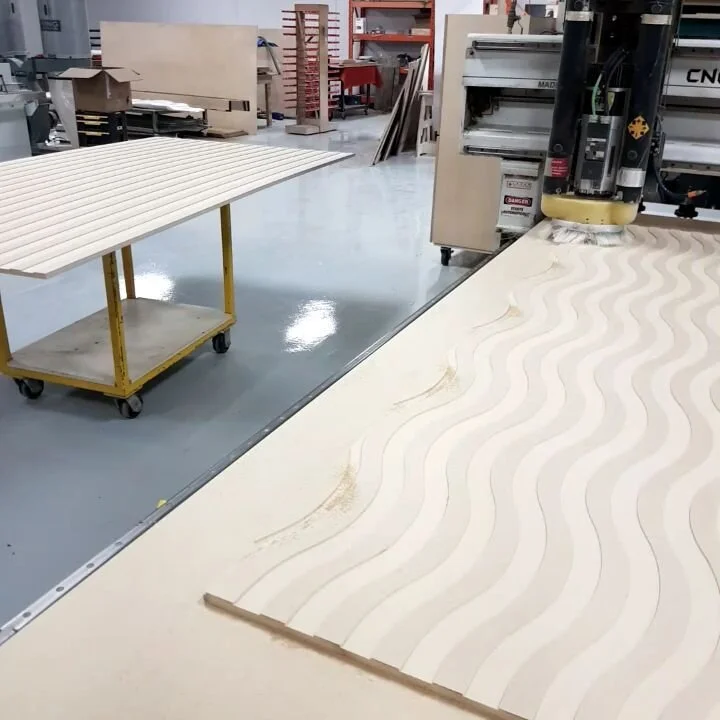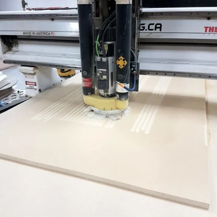 For projects with material being supplied by customer we require material in addition to the minimum requirements of the project to be supplied. This extra material should be supplied for initial testing procedures for machining and fitment of any parts together or hardware installation. Additional material is also typically required in case of part loss during machining. While we do program machining processes to minimise imperfections or part loss, custom projects present challenges that cannot always be completely anticipated. For projects using stocked material (i.e. poplar plywood, birch plywood, MDF) we will include this in our initial costings and cover any additional costs for material required. For a project requiring 20 sheets we would ask for an additional sheet or two be supplied. For a project requiring 100 sheets we would suggest supplying an additional 5 sheets. All unused sheets will be returned to the customer should they not be required to complete the machining processes. We find this approach to be the best way to get a complete set of parts for your project without the need to wait for additional material required to complete the project should any issues arise during the machining processes. It also ensures consistency in appearance of the material (colour/tone/manufactured batch) and in some cases (with veneers for instance) we can use the nicest looking material.